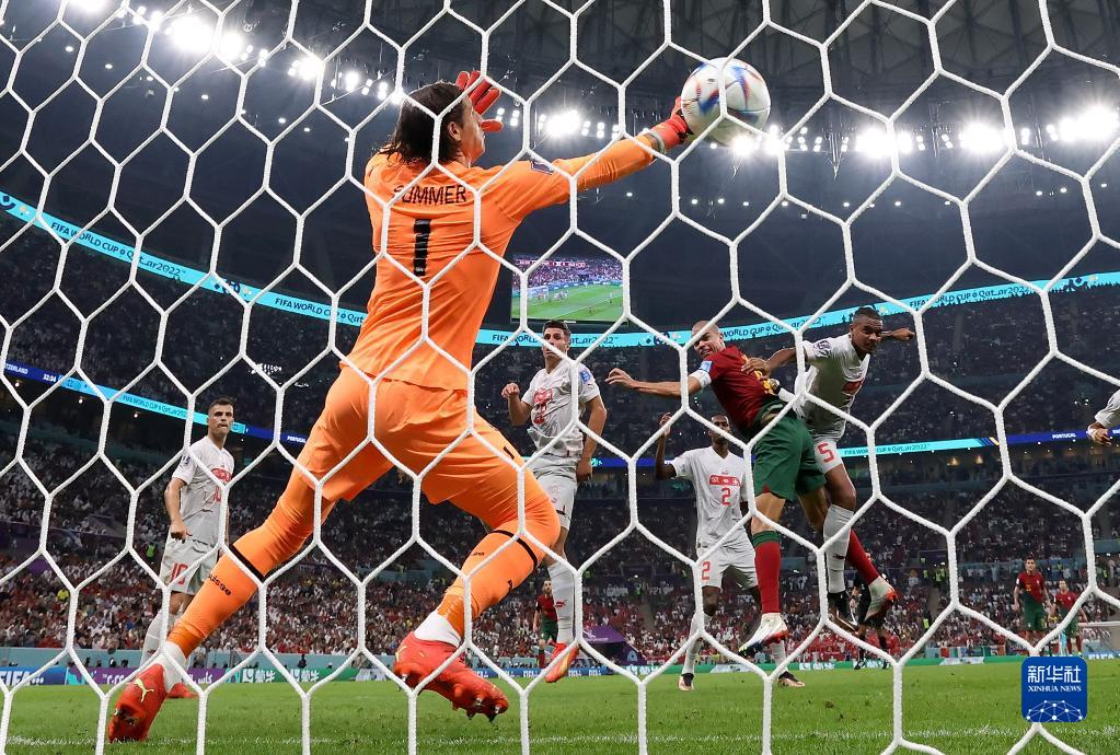 12月6日,瑞士隊守門員索默(左一)在比賽中撲救。新華社記者曹燦攝